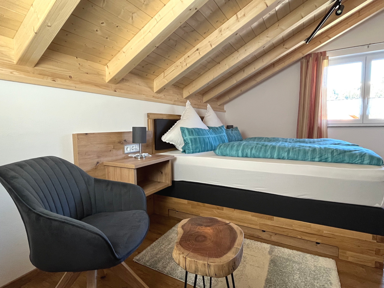 Unsere exklusive neue Ferienwohnung liegt im Dachgeschoß. Auf 105 Quadratmeter finden Sie zwei geräumige Schlafzimmer mit Boxspringbetten, ein großes Designerbad, ein separates WC und einen großen Wohn-, Ess- und Kochbereich.